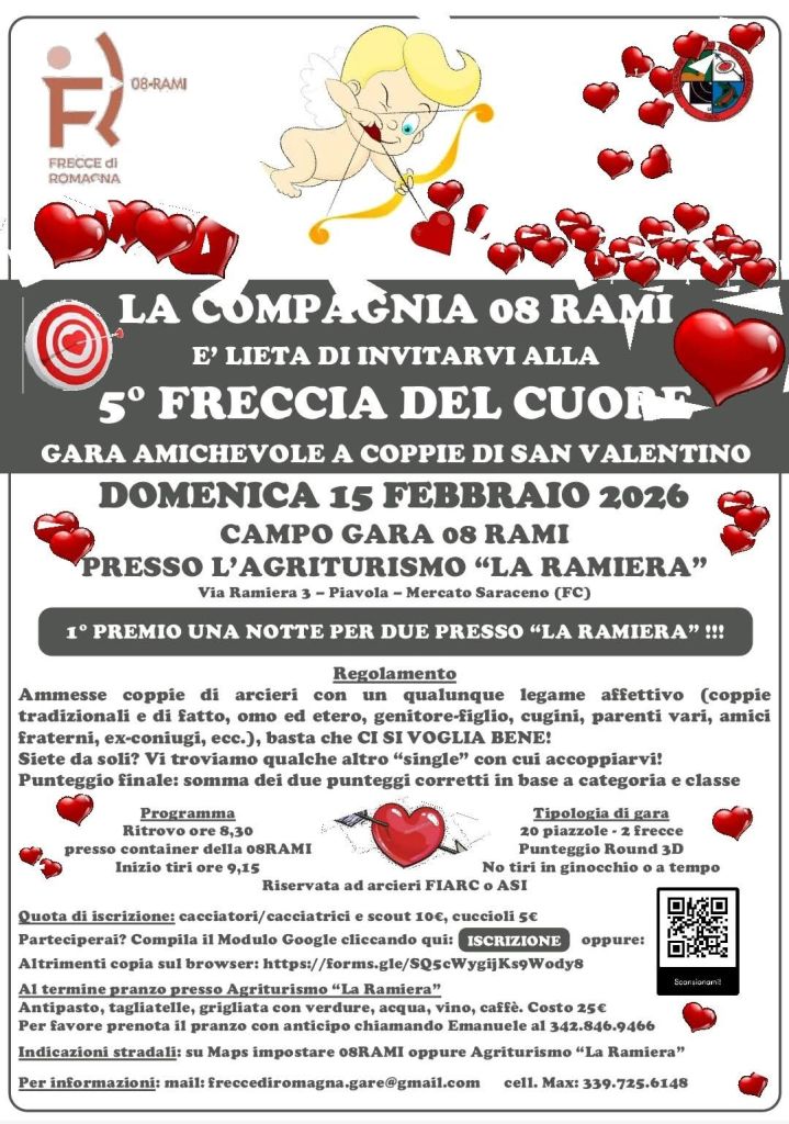Purtroppo le forti piogge di queste settimane hanno reso il campo della 08RAMI scivoloso e a rischio caduta. Inoltre le previsioni per sabato e domenica parlano di altre precipitazioni intense. Quindi per motivi di sicurezza abbiamo deciso a malincuore di rimandare la 5° Freccia del Cuore, amichevole a coppie che si doveva tenere nel campo presso l’agriturismo La Ramiera domenica 15 febbraio.